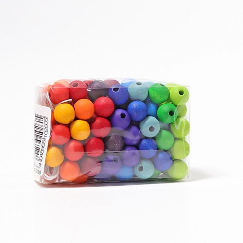 Este é um conjunto de 120 pérolas de madeira com as cores do arco-íris! Para as crianças fazerem colares, pulseiras e treinarem a sua motricidade fina, ao mesmo tempo que fazem jóias para elas ou para oferecer! Inclui fio.