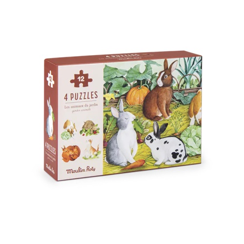 4 Mini-Puzzles dos Animais (4x12Peças) - Moulin Roty