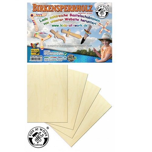 4 placas de contraplacado de bétula A4, colado à prova de água. Com modelo para construir uma faca. Qualidade idêntica aos outros conjuntos da mesma marca.