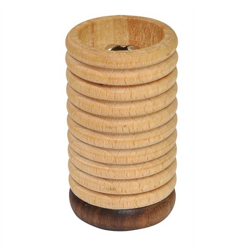 Os anéis de madeira grossos e finos sinos convidam-no a sentir e tocar de uma forma emocionante. O que é realmente especial, no entanto, são os sinos "escondidos" adicionais que também podem ser abafados com o polegar para experiências de som interessantes.