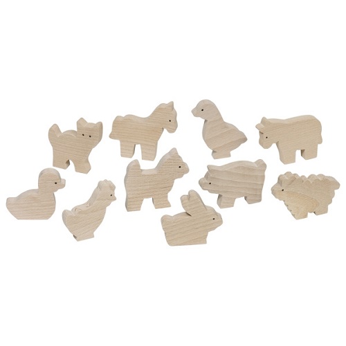 Contém 10 animais em madeira.
