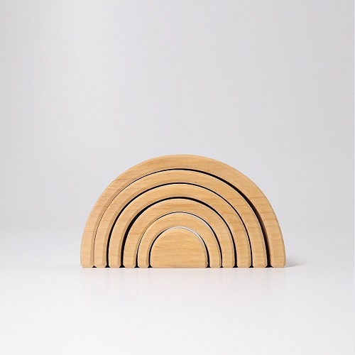 Este arco-íris com 6 arcos é realmente versátil e ideal para crianças pequenas! Faz parte da colecção dos quatro elementos da natureza da Grimm's. Á medida que a criança vai crescendo poderá fazer-se túneis para os carrinhos, casas para os bonecos, caminhos, torres e muito mais, só é preciso alguma imaginação! Ideal para estimular a motricidade e a imaginação, este brinquedo livre de encaixe tem 6 peças.