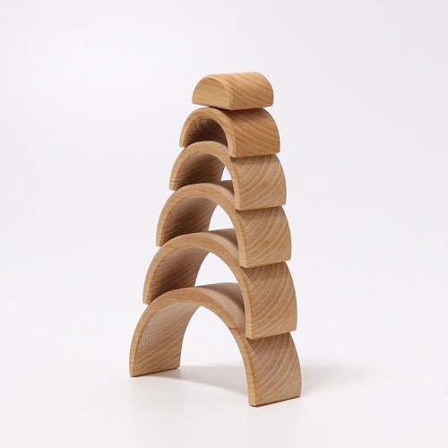 Este arco-íris mais pequeno da Grimm's, mas mesmo assim é muito versátil: as crianças podem empilhá-lo e classificá-lo ou vão usá-lo como berço de bonecas, como cerca para animais, como túnel ou ponte para veículos, como casa de anões ou construir esculturas incríveis.