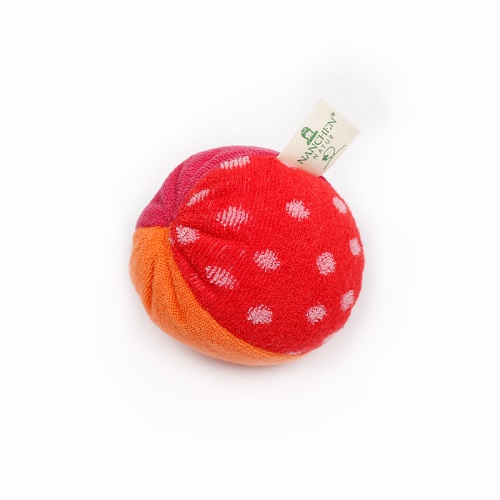 Bolinha com guizo no interior adequada para os bebés desde o seu nascimento. Bola confeccionada em algodão orgânico (kbA), preenchido com 100% lã de ovelha Biológica (kbT).