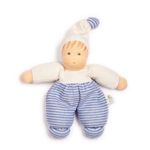 Boneco confeccionado em algodão orgânico (kbA), preenchido com 100% lã de ovelha Biológica (kbT). Com um nó no chapéu na cabeça para que o bebé possa mastigar quando os dentes surgirem. ideal para prenda de Nascimento, poderá tornar-se o fiel comapanheiro do bebé.