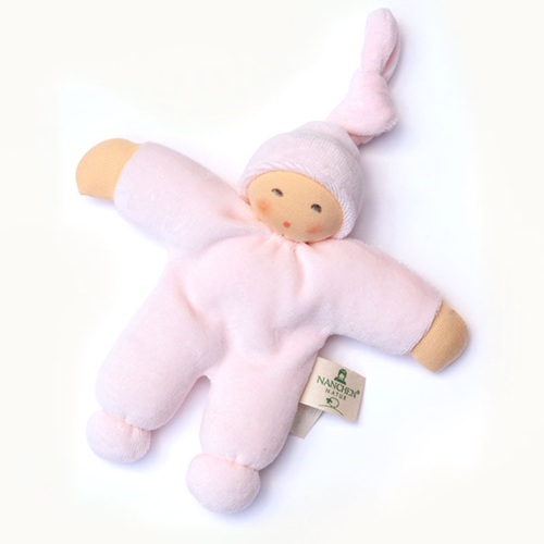 Boneco confeccionado em algodão orgânico (kbA), preenchido com 100% lã de ovelha Biológica (kbT). Com um nó no chapéu na cabeça para que o bebé possa mastigar quando os dentes surgirem. Com selo de qualidade "Spiel Gut", atribuído por um grupo de educadores, médicos, designers e pais, que testam e avaliam os melhores brinquedos.
