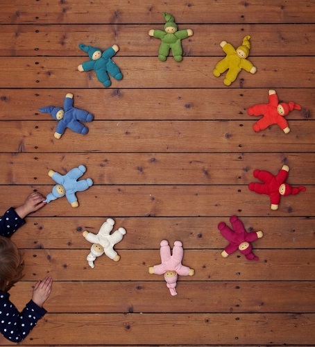 Boneco confeccionado em algodão orgânico (kbA), preenchido com 100% lã de ovelha Biológica (kbT). Com um nó no chapéu na cabeça para que o bebé possa mastigar quando os dentes surgirem. Com selo de qualidade "Spiel Gut", atribuído por um grupo de educadores, médicos, designers e pais, que testam e avaliam os melhores brinquedos.