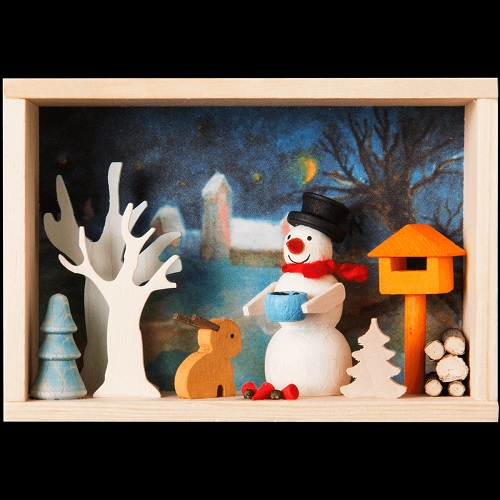 A caixa de felicitações Boneco de Neve é uma miniatura original feita à mão. Diretamente da oficina de artesãos - esta é uma peça artesanal e única tradicional de Erzgebirge da mais alta qualidade.