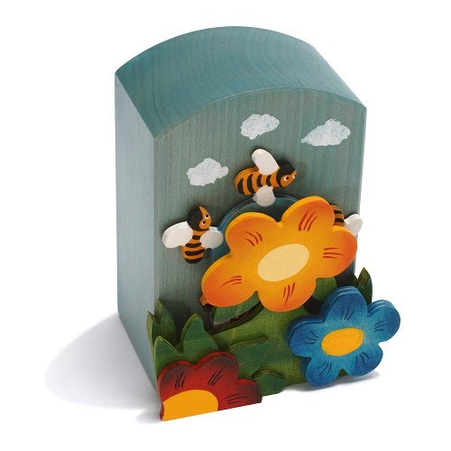 Caixa de música em madeira, totalmente feita e pintada à mão. As abelhas rodam enquanto a música toca.