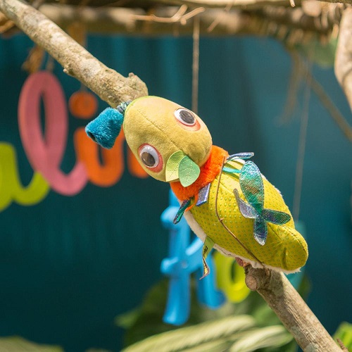 Basta puxar o sino em sua boca e seu corpo vibrará! Os seus olhos movem-se em todas as direções. Pode ser pendurado em qualquer lugar graças ao nó atrás da cauda.