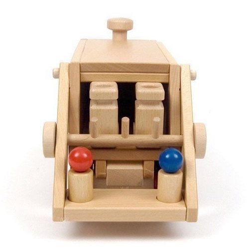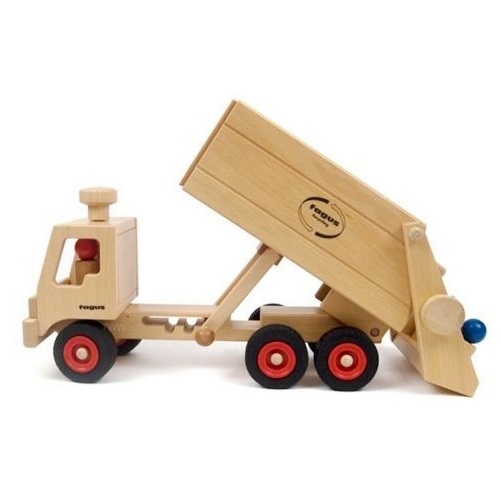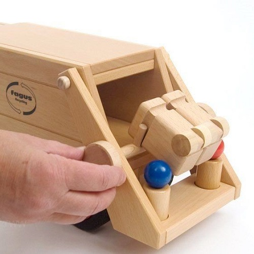 Com este camião vais poder recolher todo o lixo das tuas cidades. Com 2 caixotes de lixo e uma alavanca manual para virar os caixotes e deitar o lixo para dentro do contentor do camião! Ideal para brincar dentro de casa ou na rua. Os brinquedos da Fagus são feitos em madeira de faia maciça. Brinquedos de madeira fabricados numa oficina de reabilitação para adultos com deficiência e com selo de qualidade "Spiel Gut", atribuído por um grupo de educadores, médicos, designers e pais, que testam e avaliam os brinquedos. Contém 2 condutores + 2 trabalhadores.