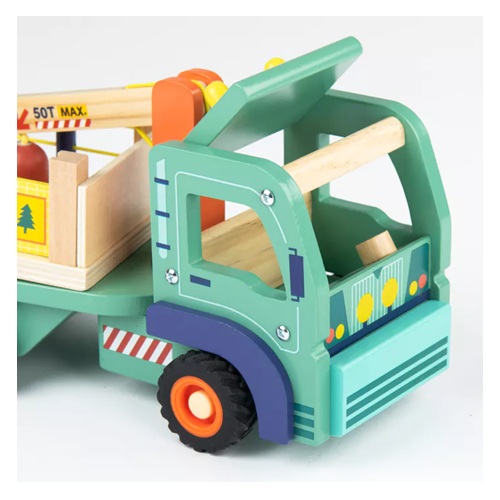 Bip-bip! Abram caminho para o lindo camião florestal de madeira! Graças ao seu guindaste magnético e outros acessórios incluídos, os lenhadores podem carregar e descarregar os troncos. Prontos para brincar?