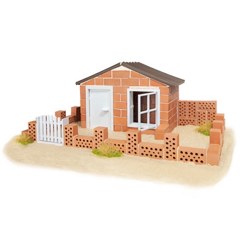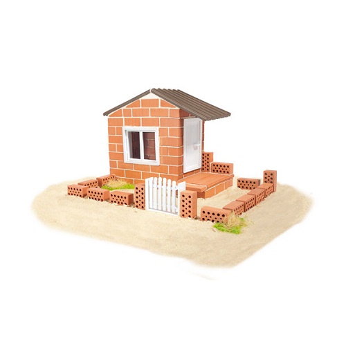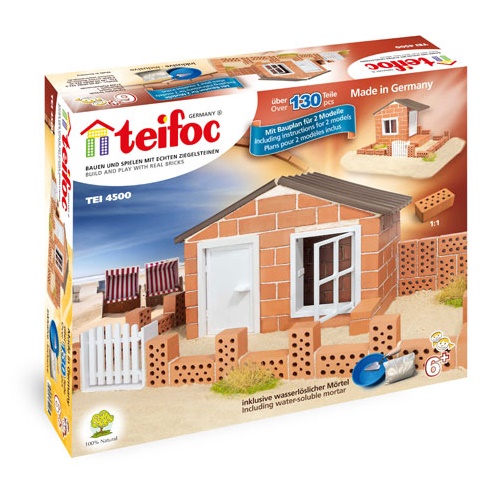 O conjunto também inclui instruções de construção detalhadas, uma tigela de argamassa, espátula, tijolos e argamassa. Brincar com produtos Teifoc promove habilidades motoras finas, bem como raciocínio lógico e espacial.