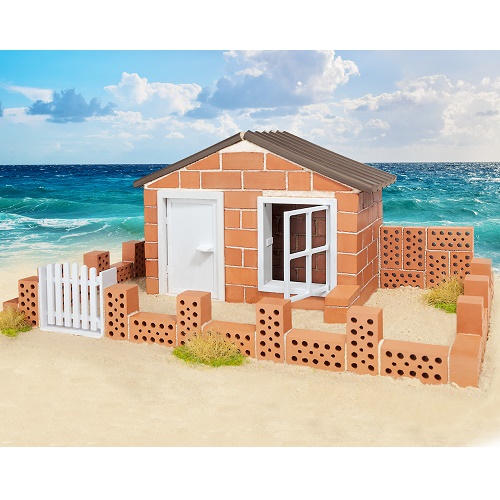 Sol, praia, mar - finalmente verão! Uma casa de praia chique em 2 versões é construída com mais de 130 componentes. A pequena casa com porta, janela e telhado de painel é relativamente fácil de construir. Uma pequena cerca do jardim frontal com uma porta completa o ambiente geral.