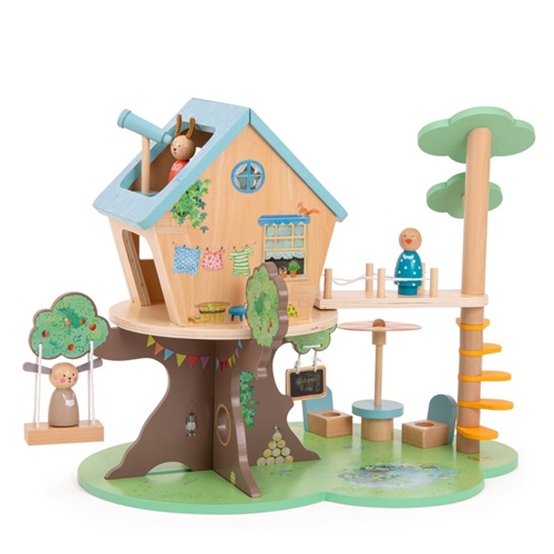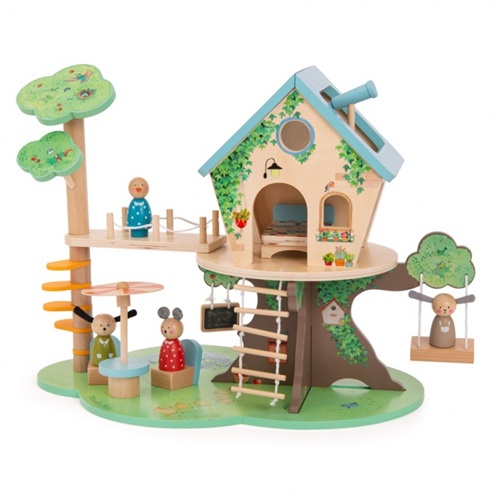 A casa na árvore é o lugar perfeito para brincar! O acesso é feito por escada de corda ou por ponte suspensa na árvore vizinha. Toda em madeira e removível, inclui ainda um pequeno móvel de jardim para descansar à sombra... Personagens vendidos separadamente. (Mobiliário incluído).