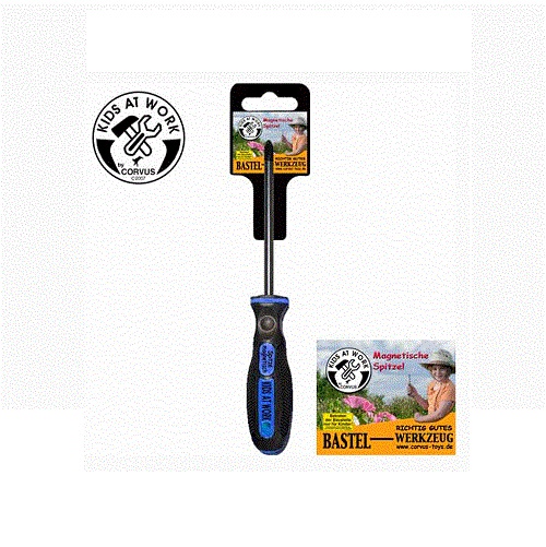 A prática chave de fendas da Corvus é feita de metal com um revestimento de plástico resistente no cabo. A ponta da chave de fenda é em forma de cruz e magnetizada, o que torna o trabalho com parafusos menores muito mais fácil.