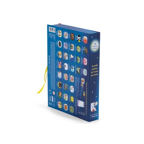 Com este cinema vais poder convidar a tua famíla e amigos e fazer grandes serões a contar as tuas hstórias. Contém uma lanterna de projeção, 32 discos com histórias, bilhetes de cinema e um bloco com folhas de cartaz.