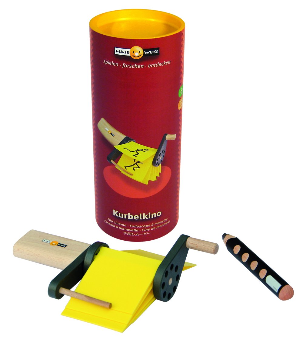 Dá vida aos teus desenhos! O cinema de manivela faz filmes com imagens individuais. E os filmes continuam a rodar até que tu pares a manivela. Tu poderás criar mundos maravilhosos usando os vários modelos incluidos na embalagem. O Cinema de Manivela fará de ti um verdadeiro realizador de cinema. Ensina os teus desenhos a mexerem. Adaptado para a mão direita e esquerda. Com instruções em português.