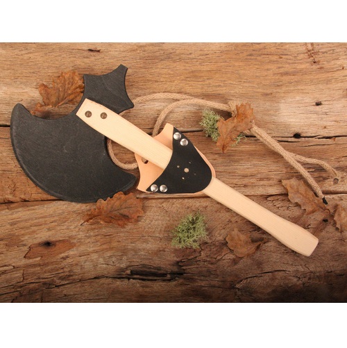 Cinto VAH para Espada e Machado. O equipamento perfeito para carregar as tuas espadas ou machados contigo. Em couro bicolor simples, com rebites e cordão, eles oferecem um suporte seguro para suas armas de brinquedo de madeira. Cinto para colocar as espadas de Madeira feito de corda e couro macio.