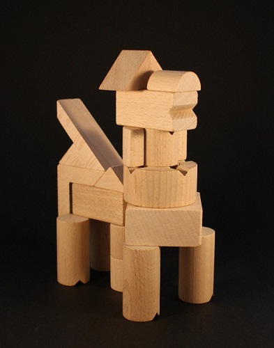 Construção em madeira com diversas possiblidades de construção desenhada pelo designer Toshiaki Yamada (Osaka, Japão).