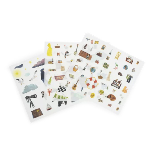 Navega rumo ao farol! Posiciona a ilustração escolhida sobre a imagem que desejas personalizar, esfrega com um lápis e pronto! A transferência acontece como magia. O kit inclui um farol para completar, um poster e 3 folhas de adesivos.