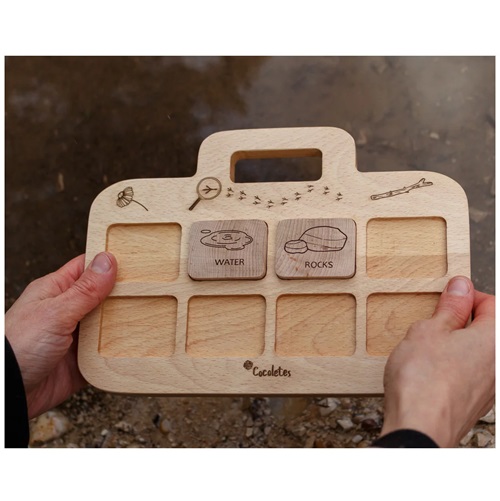 Recurso educativo ideal para reconhecer e classificar alguns dos elementos naturais que podemos encontrar na natureza. Foi concebido para ser manuseado e transportado nos seus passeios pela floresta graças à sua pega central.