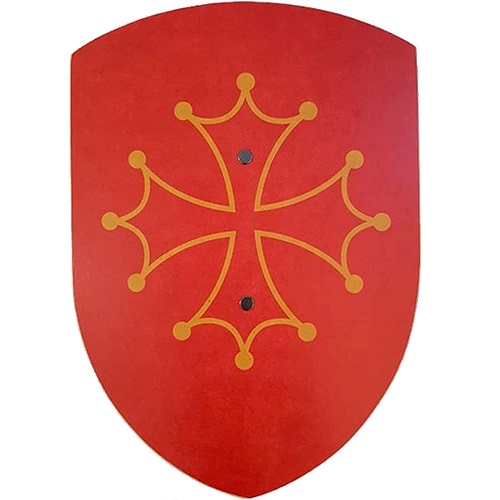 Escudo dos cavaleiros de Occitane do País Cátaro. Com pega atrás em pele reciclada.