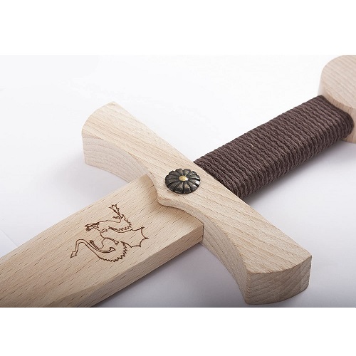 Espada de madeira é feita de faia maciça e é muito estável para todos os tipos de lutas. O cabo é envolto em algodão trançado e tem um dragão gravado na lâmina.