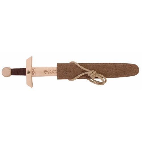 Espada de madeira é feita de faia maciça e é muito estável para todos os tipos de lutas. O cabo é envolto em algodão trançado e tem gravada a palavra excaibur na lâmina. Este conjuto possui a bainha em tecido para prender a espada à cintura.