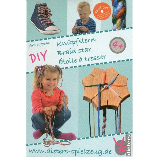 As crianças poderão usar esta estrela de entrançar em madeira para fazer coloridas pulseiras da amizade, bandoletes, atacadores e muito mais. Fácil de transportar, a estrela é ideal para fazer passar o tempo na sala de espera do médico, no restaurante ou numa viagem longa. Inclui estrela de madeira, tecido e instruções.