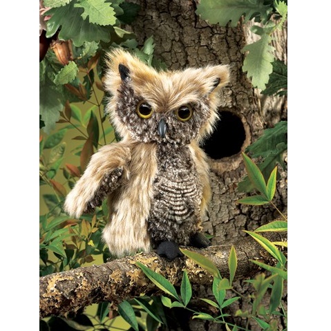 Este Fantoche Coruja é tão realista que até se pode camuflar na floresta! Graças à sua pelugem cinza que imita as penas macias e a sua cabeça rotatória. A cabeça vira com a ajuda de uma vara escondida no fantoche.