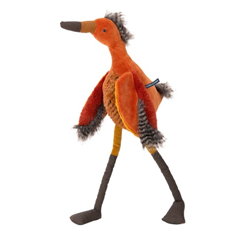 Uma garça como nenhuma outra, esta é avermelhada com pés longos e bico pontudo coberto de purpurina, barriga redonda com pêlo texturizado e crina listrada de zebra.