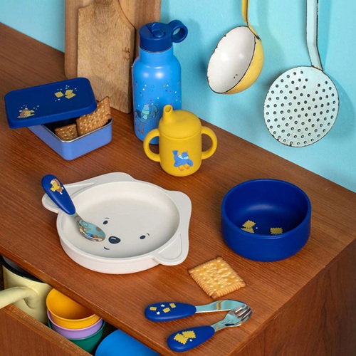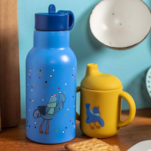 Garrafa de água Puce and Pilou, lindamente ilustrada. Compacta e equipada com um mosquetão, cabe facilmente numa mochila para levar para qualquer lugar!