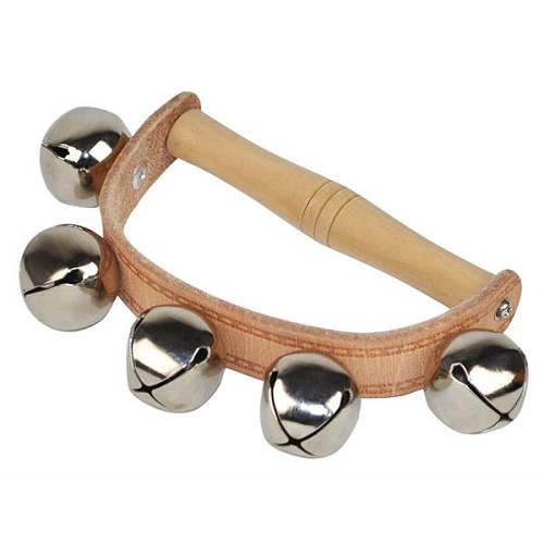 O fino cabo de madeira fica nas mãos das crianças e a robusta pulseira de couro segura os 5 sinos com segurança - basta sacudi-los e dá para ouvir um sino alegre!
