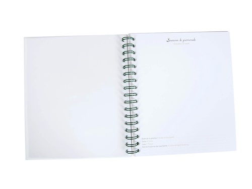 Livro encadernado em espiral com papel aquarela para montar flores/plantas e registrar achados. Cada página é separada por uma folha grossa à prova de gordura para ajudar a proteger as amostras.