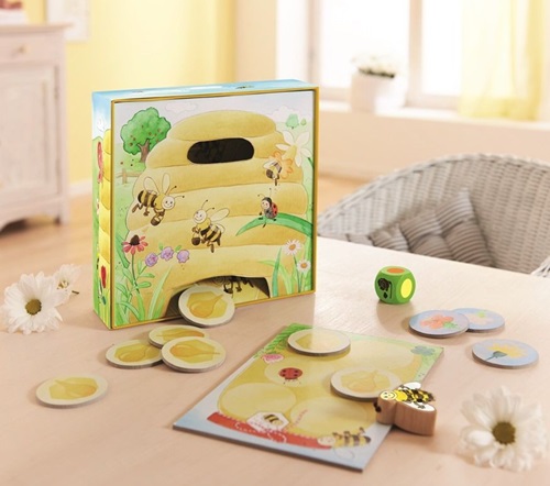 Um conjunto de dois jogos de regras para ajudar a abelha Abélia a fazer mel! Estimula a motricidade fina e motora e as capacidades de associação de cor. Dois jogos cooperativos - todos ganham ou todos perdem - ideal para a introdução ao jogo. Para 1 a 4 jogadores a partir dos 2 anos. Regras em português no interior.