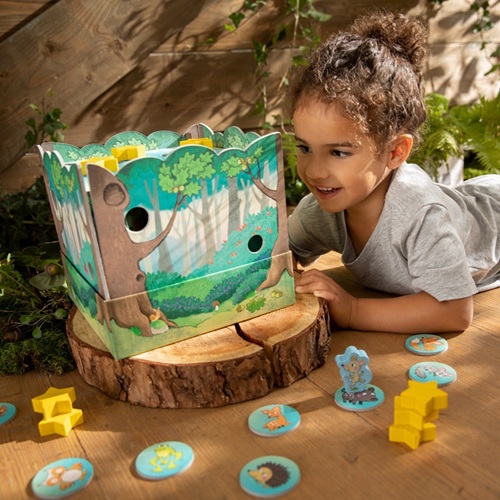 Quem encontrará os amigos da floresta em dois emocionantes jogos de memória? Este jogo para crianças da série Os Meus Primeiros Jogos da HABA apresenta componentes coloridos feitos de cartão resistente e madeira. Os animais fofos da floresta e a paisagem envolvente são ricamente ilustrados. Num piscar de olhos, a estrutura 3D do jogo se transforma numa floresta densa com buracos. Estrelas de madeira fáceis de segurar brilham no céu. Estes jogos para crianças treinam a memória, praticam a observação cuidadosa e a comunicação. Aprendendo, a brincar com a HABA.