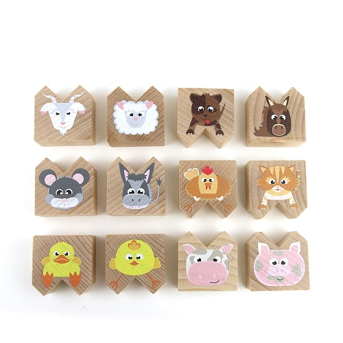 12 animais de madeira