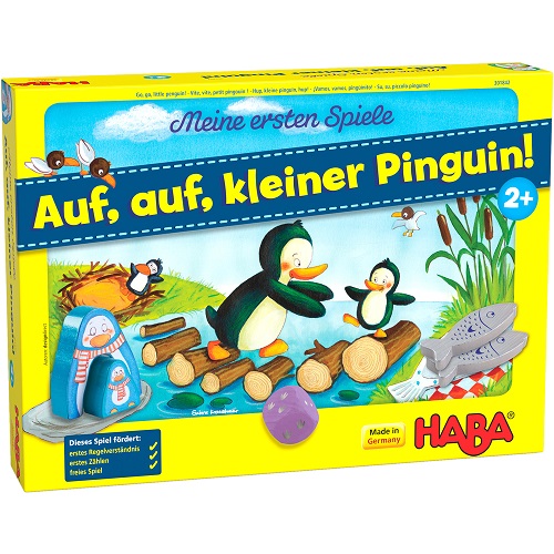As mães pinguins e seus bebés vivem numa ilha, mas o peixe saboroso está no continente, e os bebés pinguins ainda não sabem nadar. Felizmente, há muitas pedras, troncos e pranchas naa água para que os bebés pinguins possam pular com suas mamães de um para o outro. Qual dupla de pinguins será a primeira a chegar ao prato no continente e devorar os dois saborosos peixes?