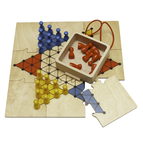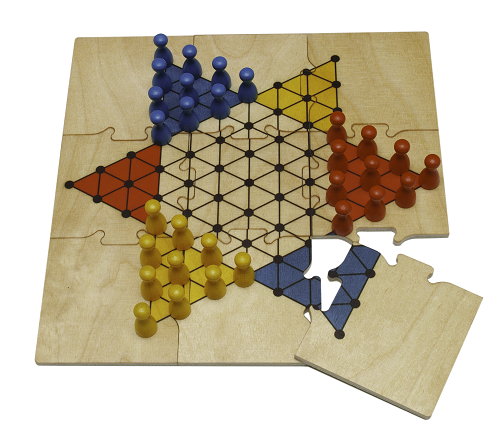 Vais poder levar este jogo Halma, totalmente feito em madeira, para todo o lado. O Tabuleiro de jogo é um puzzle que depois de jogares prendes à caixa de arrumação das peças com o elástico existente e poderás transportar facimente para onde quiseres. de 2 a 3 Jogadores. Regras em português no interior.