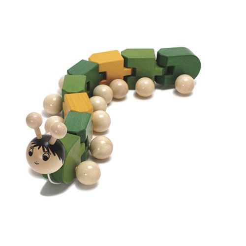 Lagarta de puxar em madeira, feito e pintado à mão.