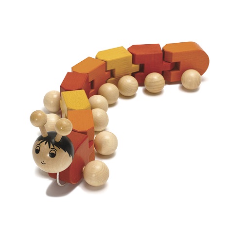 Lagarta de puxar em madeira, feito e pintado à mão.