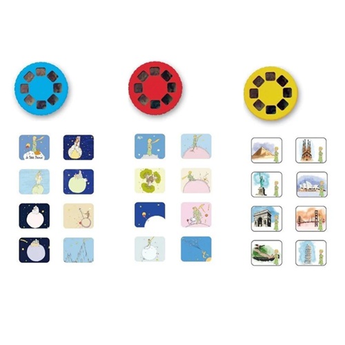 Um produto mágico e especial para os fãs do principezinho. A lanterna projeta slides com alternadas na parede ou no teto. A criança pode desenvolver a imaginação e ter o papel de narrador ou pode deixar-se apenas embalar pela história.
