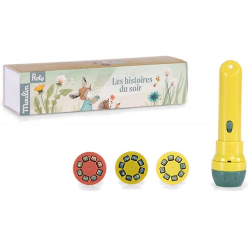Imaginar e contar histórias torna-se uma brincadeira de criança com a lanterna de bolso! Inclui uma lanterna de projeção e 3 discos para imaginar belas histórias antes de adormecer à noite. Apagamos a luz para que a magia aconteça e lá vamos nós...