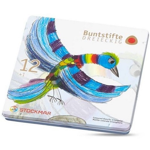 Novos lápis de cor gigantes da Stockmar. Triangulares, permitem às crianças pegar de maneira correcta nos lápis. As suas minas são grossas, com 6,25mm, e resistentes à água, e as cores são muito luminosas e têm uma grande concentração de pigmento. Macios e de fácil utilização, os lápis cobrem grandes superfícies com facilidade. A madeira de tília permite que sejam afiados muitas vezes sem lascar. Caixas de metal com 12, 18 ou 24 cores, e todas as caixas incluem um lápis de grafite extra.