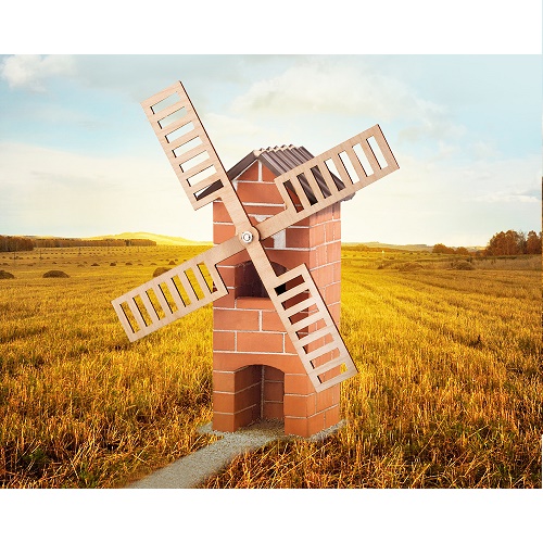 Assim que o moinho de Teifoc estiver pronto, ele pode ser usado como brinquedo numa pequena aldeia. A aparência realista e as lâminas giratórias do moinho proporcionam uma sensação realista. O moinho de vento combina os materiais tijolo e madeira.