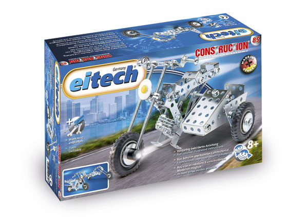 Com este kit de construção em metal, poderá junto com os seus filhos produzir pelo menos três modelos diferentes de motocicletas. O seu filho é apresentado ao mundo da tecnologia de uma forma lúdica com os kits de construção de metal da eitech. Este conjunto é particularmente adequado para iniciantes. O valor educativo dos conjuntos de construção também não deve ser desprezado, uma vez que as habilidades motoras e criativas são treinadas ao mesmo tempo. O desenvolvimento de estruturas de pensamento tridimensionais também é promovido. Por essas razões, os kits de construção em metal eitech também são material didático reconhecido nas escolas e usados nas aulas. Todos os componentes podem ser construídos juntos e expandidos com conjuntos adicionais. Contém 170 peças.