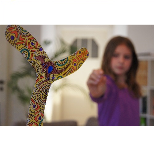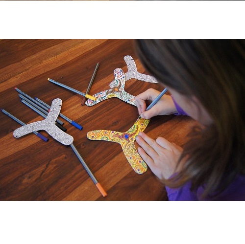 O jogo é projetado para crianças (a partir dos 4 anos) e iniciantes de todas as idades neste desporto de habilidade mundialmente famoso. Os bumerangues podem ser coloridos e modelados de forma criativa na arte aborígine. Contém 4 boomerangs 2 com círculo de vôo 2-3 m e outros 2 com círculo de vôo 4-5 m. Inclui instruções com ideias de jogos em alemão ou inglês. Ver o vídeo demonstrativo abaixo.