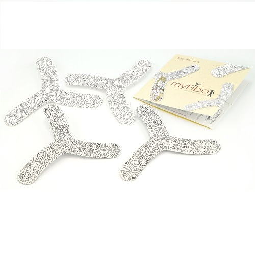 Agora vais poder pintar e lançar um disco voador dentro de casa sem qualquer perigo. MyFibo é um conjunto de 4 boomerangs de interior, feitos de cartão premium robusto.