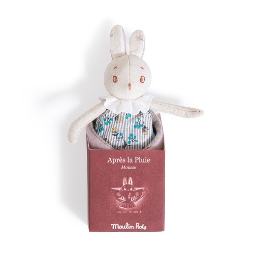 Vamos descobrir juntos Mousse, adorável coelhinho da nova coleção Aprés la Pluie da Moulin Roty, desenhada por Lucille Michieli. Simpática e poética, esta gama leva-nos a conhecer lindos peluches de olhos grandes, saídos do mato e prontos a escorregar para debaixo dos lençóis ou da gaveta. A mousse será a primeira companhia ideal para o seu bebé, que o acariciará com ternura a qualquer hora do dia. Medindo 16 cm, as mãozinhas do seu filho vão conseguir agarrá-lo e manuseá-lo facilmente. Vem em uma caixa de papelão, bem como um cobertor em forma de folha de lã rosa e tecido de cambraia cinza, perfeito para embrulhar este lindo cobertor num ambiente macio. A capa dupla-face fecha com um velcro para manter o Mousse aquecido. Os seus materiais naturais em panos de algodão orgânico, bem como seu design inspirado em designs japoneses, também agradarão aos pais. Ideal como presente de nascimento.